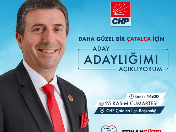 25 Kasım Cumartesi günü saat 14:00’da CHP Çatalca İlçe Başkanlığı’nda yapacağım Çatalca Belediye Başkanı Aday Adaylığı açıklamama tüm halkımızı davet ediyorum.